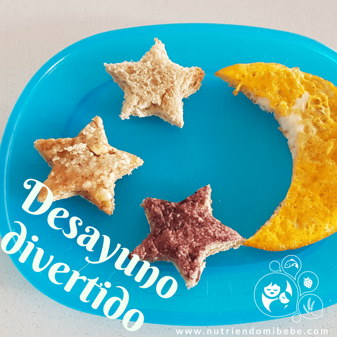 Huevo cortado en forma de luna y pan integral en tajadas cortado en forma de estrellas..
