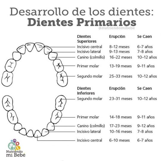 Observa esta imagen sobre la erupción de los dientes y los rangos en los que puede variar.