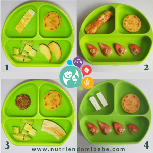 Recuerden que la cantidad de alimentos que consume el niño es muy variable y dependerá de muchos factores por eso no especifico las edades. Lo hago con el fin de darles ideas, pero no pretendiendo que sean porciones para niños de edades específicas, ni tampoco que en el caso de niños pequeños tengan que comerse todo el plato completamente.